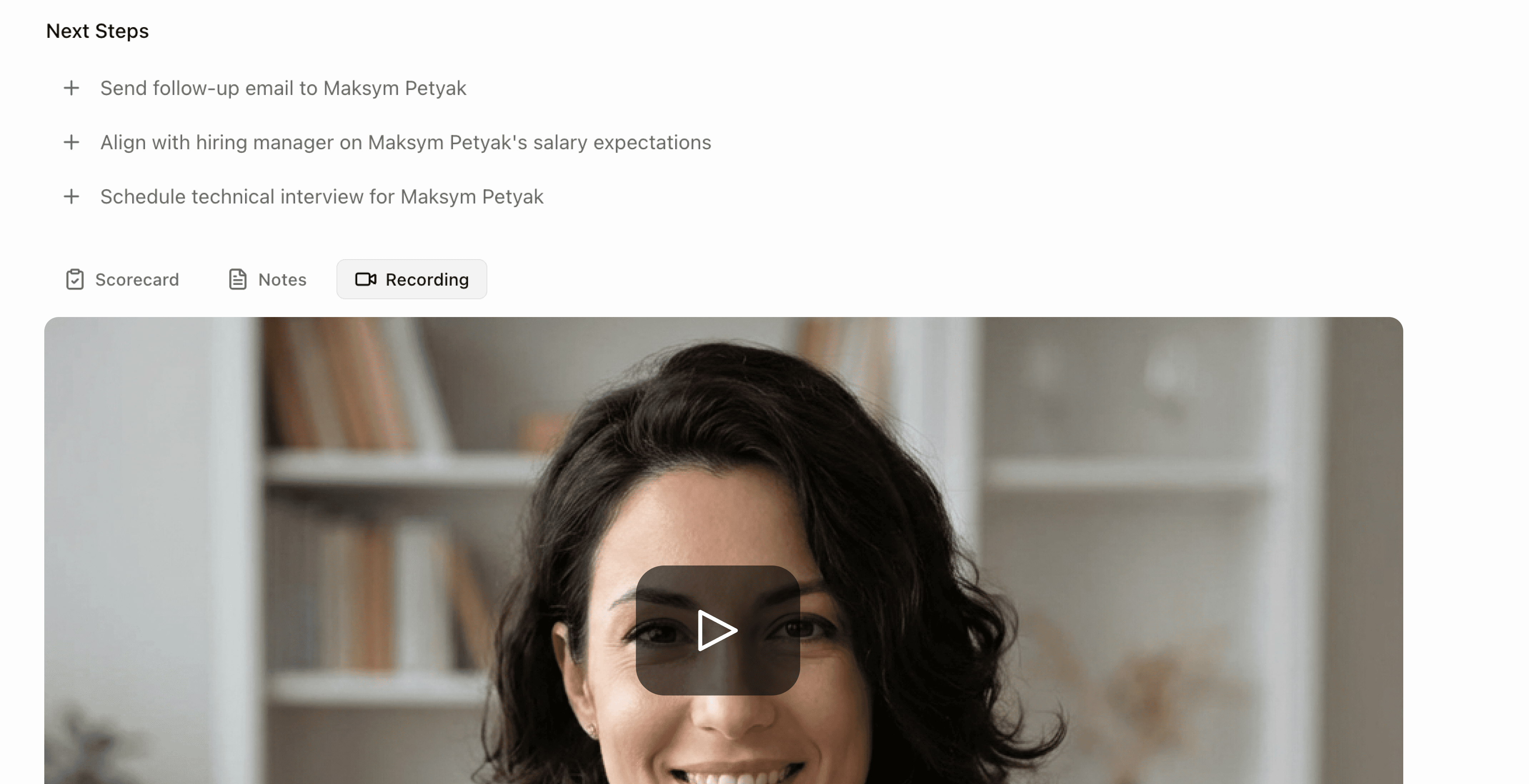 Automatic interview prep, transcription, video recording, and follow-ups - so you can focus on the winning talent, not the admin.