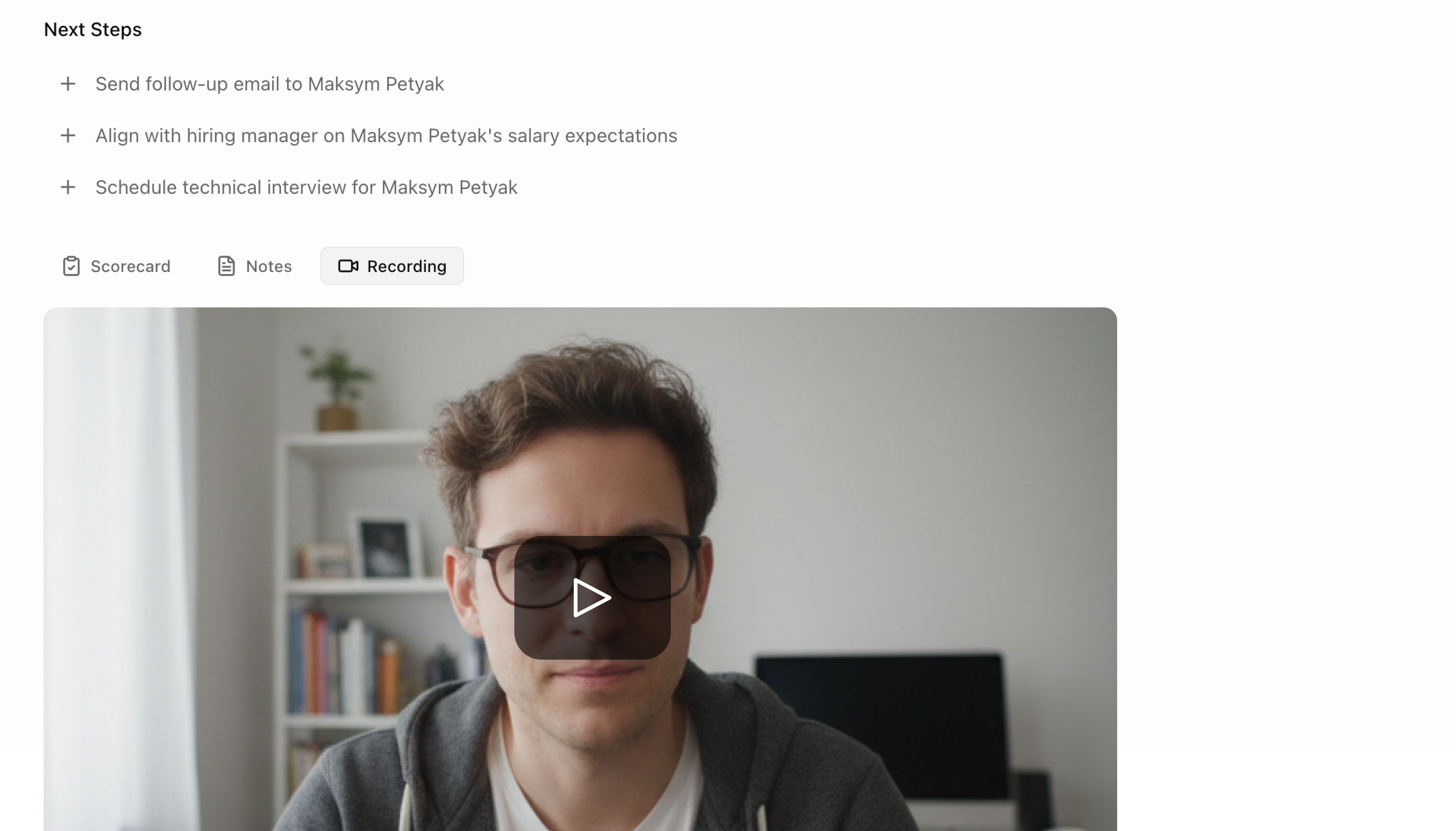 Automatic interview prep, transcription, video recording, and follow-ups - so you can focus on the winning talent, not the admin.